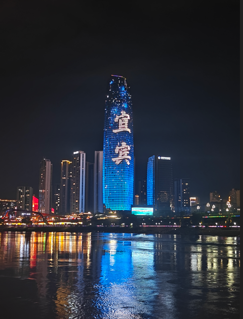 三江合一的合江门,紧挨着冠英古街,又有观江阁矗立,到了晚上,灯光亮起,合江门的大地球就活起来,隔岸远眺,江对岸大厦投影着宜宾二字,一如上海外滩,也如哈尔滨的防洪纪念塔