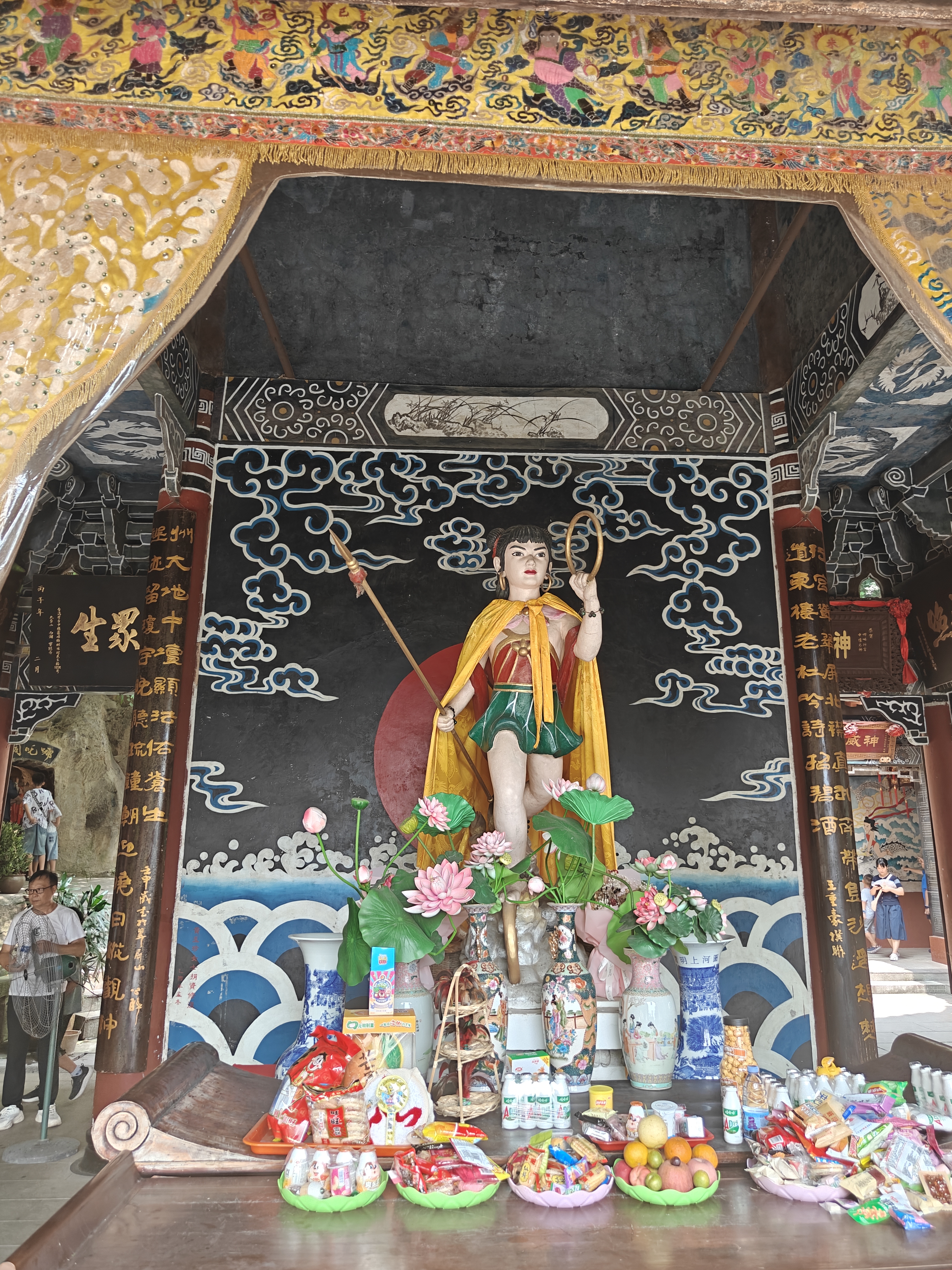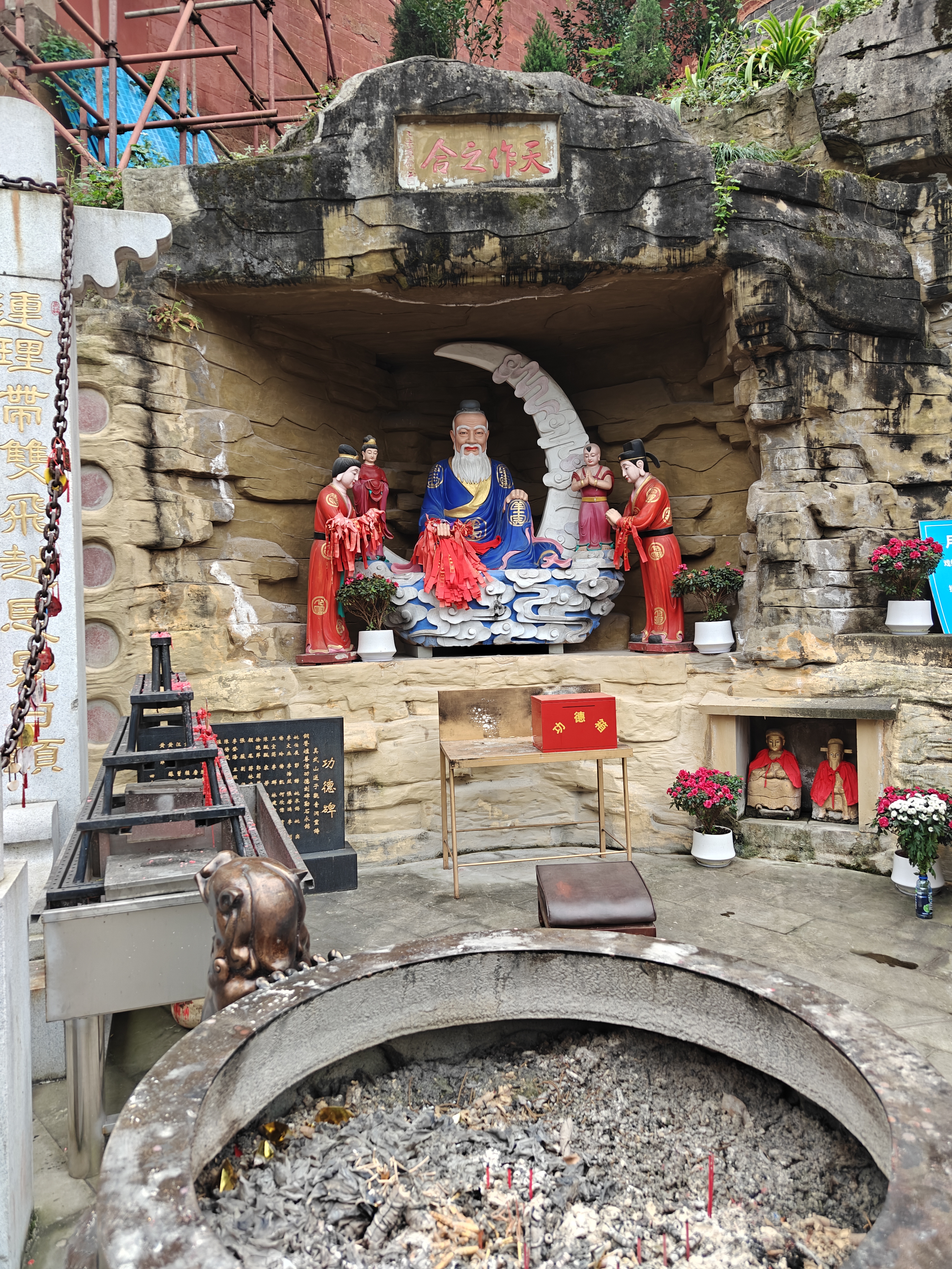 从山顶向下,哪吒行宫,供奉着哪吒三太子,千佛寺,有着成千的佛像,又有真武山建筑群,供奉三清,去的时候一部分建筑在翻修