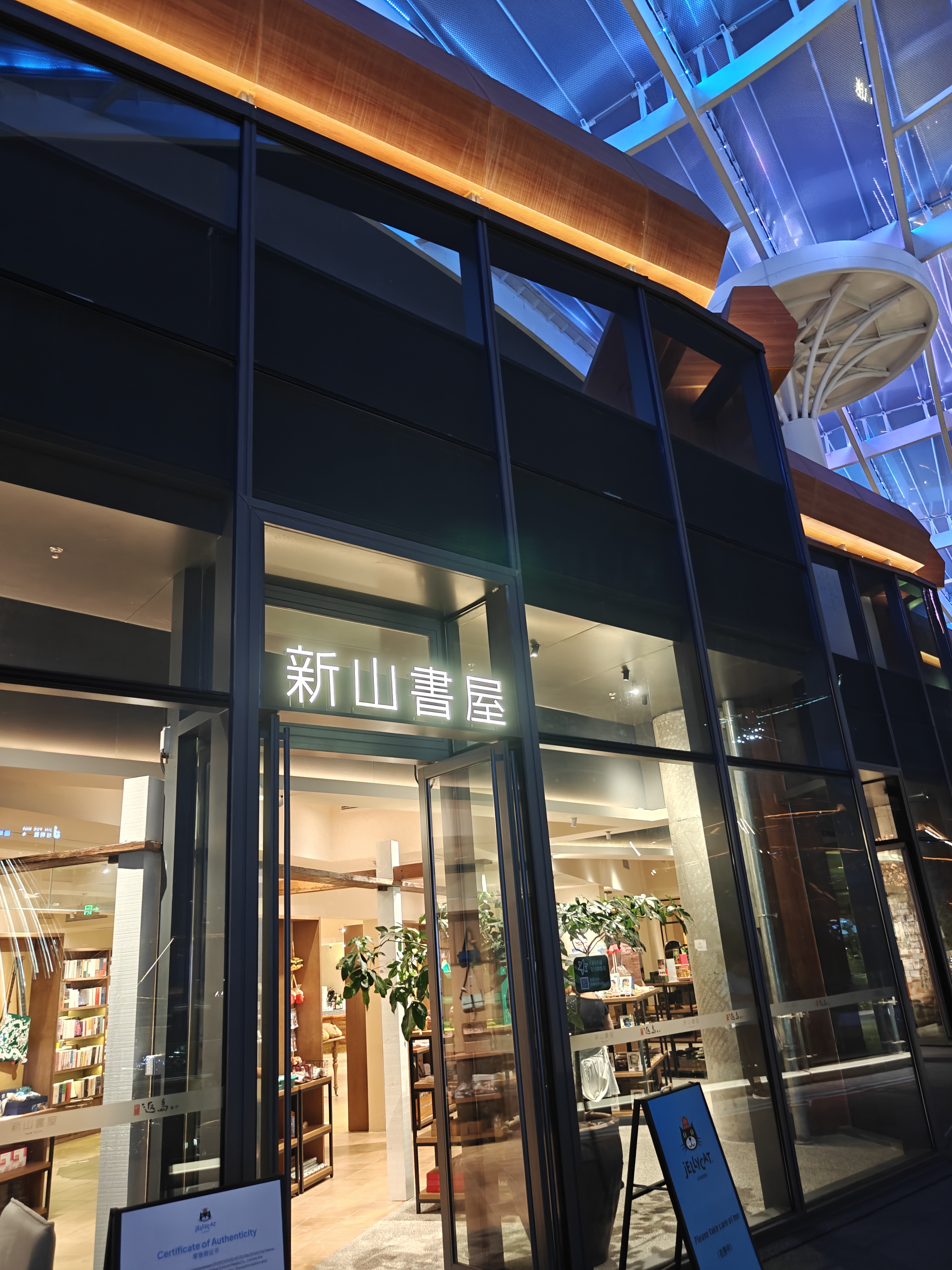 这里还有个新近比较火的新山书屋,布局类似西西弗,仍然会有消费入座,不过这个书屋占地很大,分上下两层,上层书籍,下层食堂,书籍区除了消费入座的座位,还在室外廊庭下有一些软垫座位,在天气凉爽时捧一本书坐下去也是一桩快事