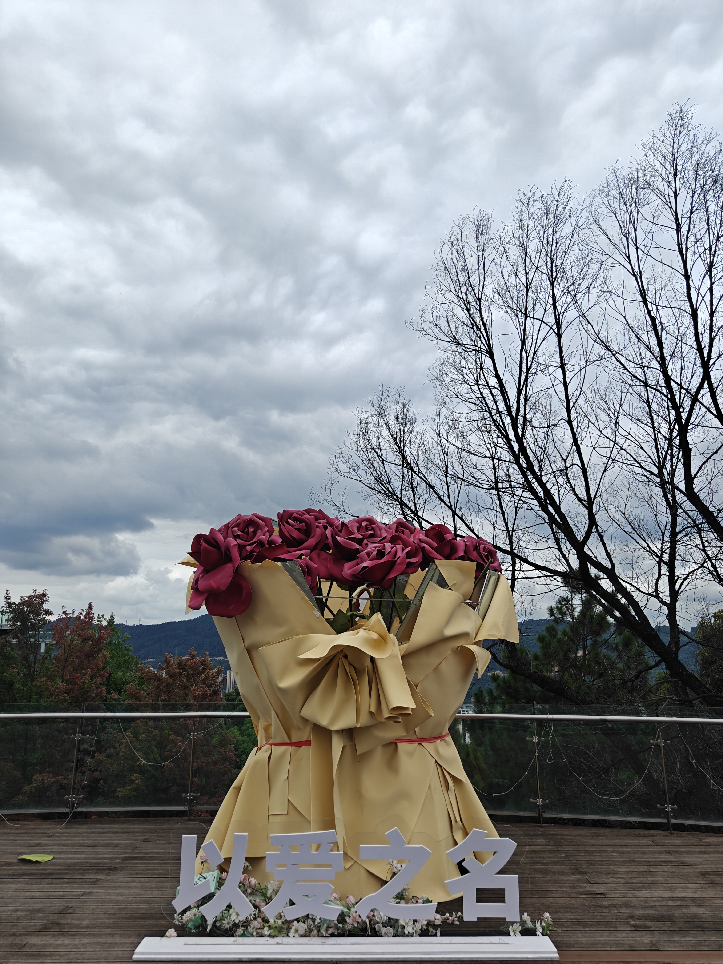 山上面也有一个小型商场,不过游客很少,里面很多店都是关着灯没有开放,室外有着以爱之名的布景,适合打卡拍照